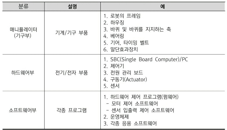 로봇의 구성을 세밀히 구분하면 다음과 같다.