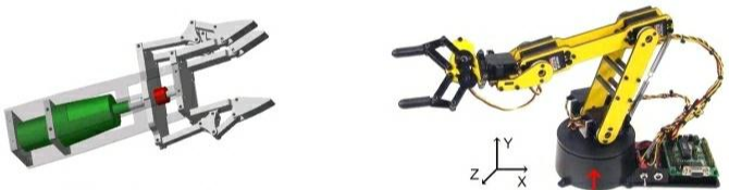 만약 말단장치가 기계적으로 열리고 닫히는 장치라면, 그것은 그리퍼(gripper)라 부른다. 만약 말단장치가 공구 또는 특별한 부착물이라면 그것은 공정 공구(process tooling)라고 부른다. 전기적으로 제어되는 산업용 로봇 Motoman-SK16는 6자유도와 그리퍼를 나타낸다. 이 로봇은 용접, 조립 및 재료 가공용으로 설계된 관절형 로봇이다. 산업용 로봇 Cincinnati Milacron T3 776은 손목과 공구를 갖는다. 이 로봇은 중량물 공정의 응용에 사용되도록 설계되었다.